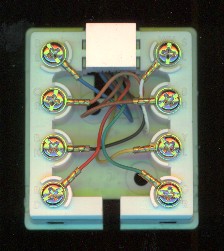 | Гнезда устанавливаются в сетевые карты, хабы, трансиверы и другие устройства. Сам разъем представляет собой ряд (8 шт.) пружинящих контактов и выемку для фиксатора вилки. Если смотреть на гнездо со стороны контактов, когда они располагаются снизу, то отсчет идет справа налево. | ![]() |