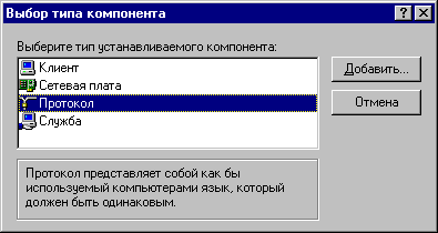 Добавим поддержку протокола TCP/IP. Нажмите кнопку "Добавить". |