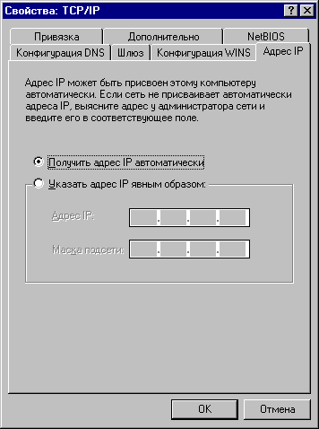Примечание: настройка остальных параметров протокола (Шлюз, WINS, DNS), если она вам нужна, производится в соответствии с установленными в вашей сети параметрами. Проконсультируйтесь у вашего сетевого администратора. |